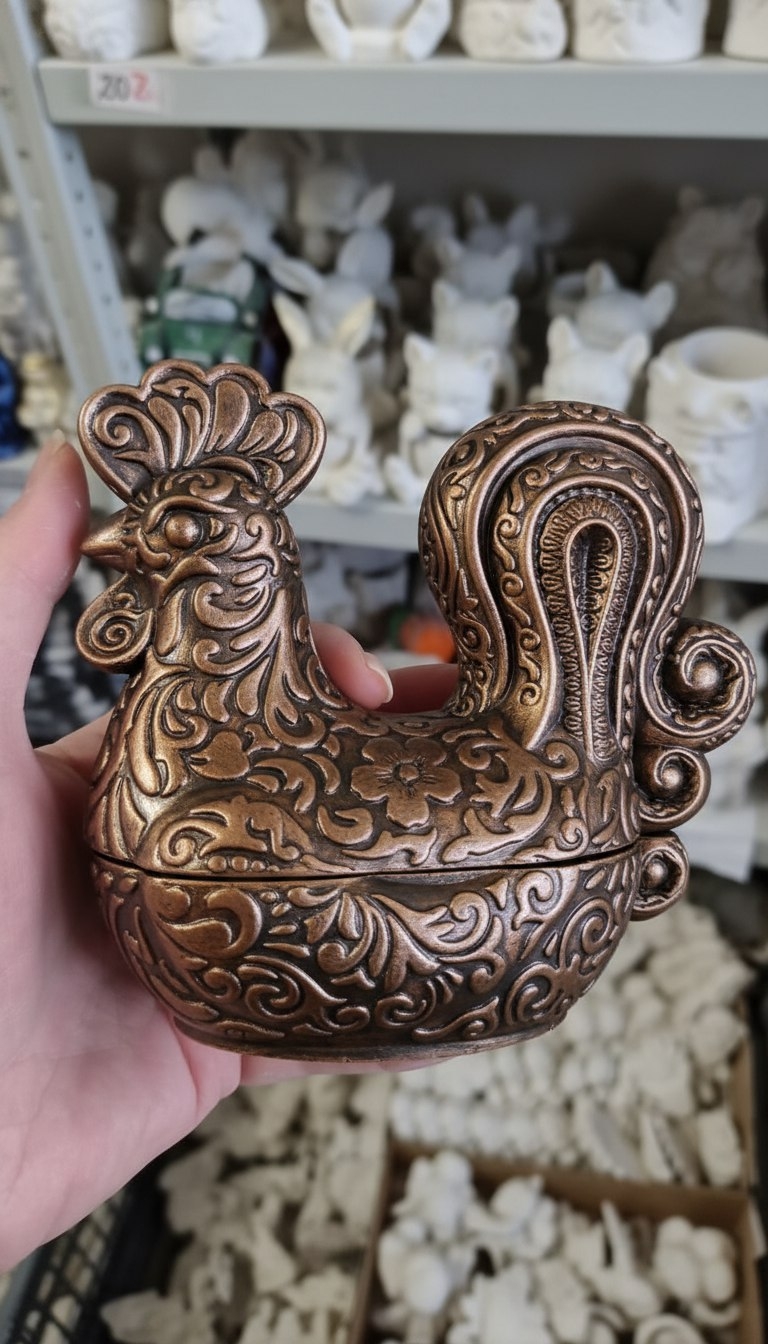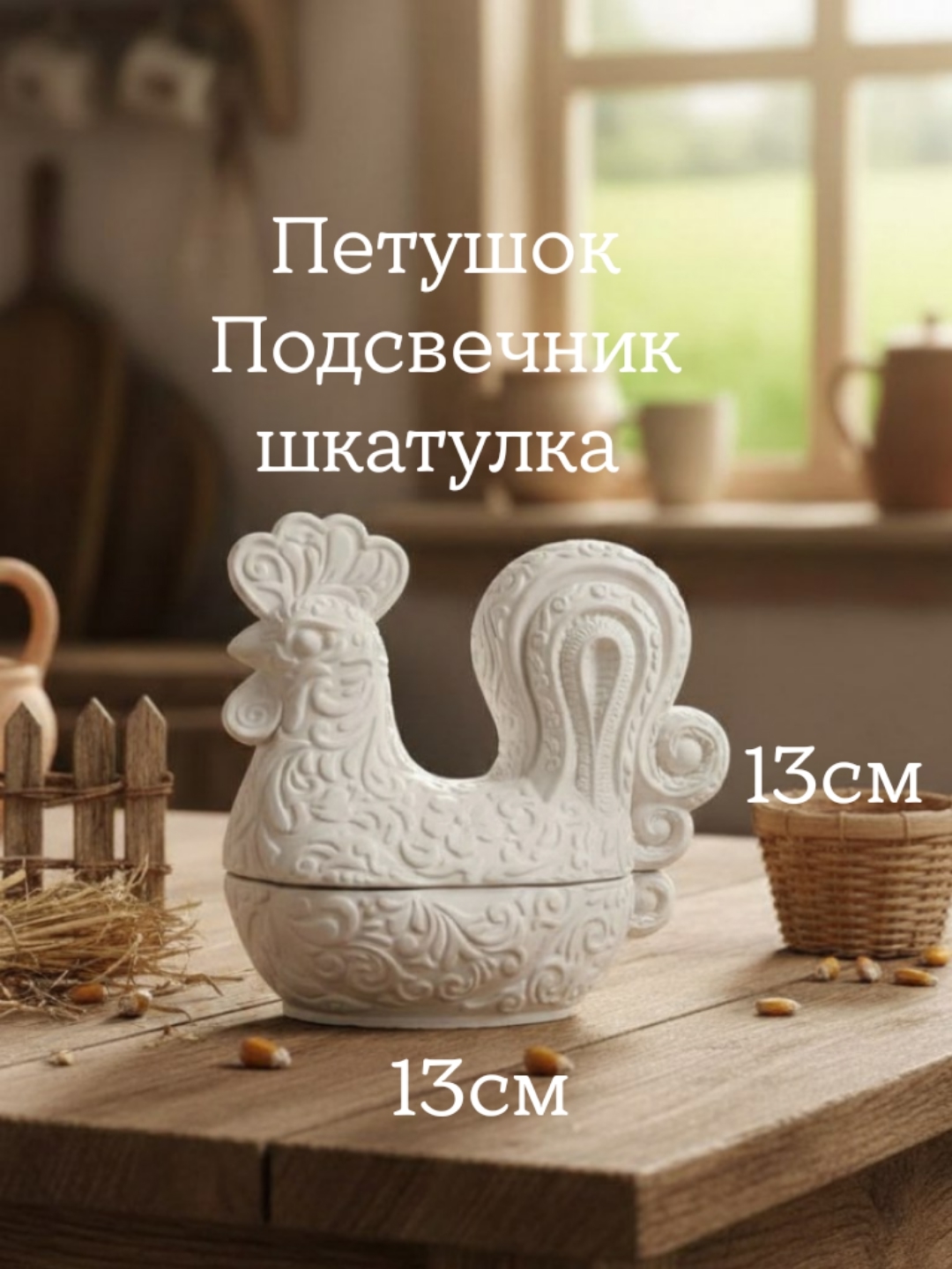 - Резной Петушок из гипса (шкатулка/подсвечник)Высота: 13 см.