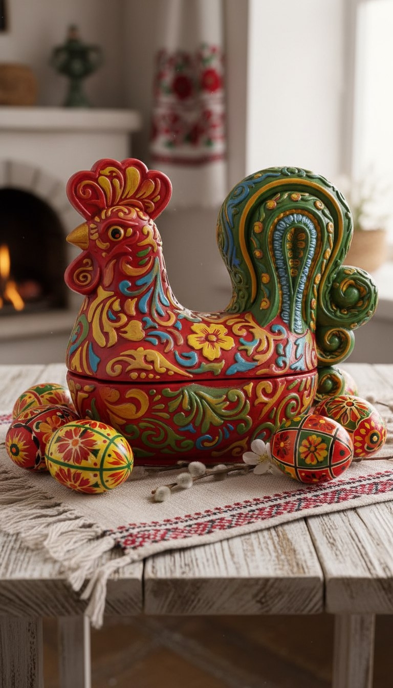 Резной Петушок шкатулка/подсвечник)Высота: 13 см.